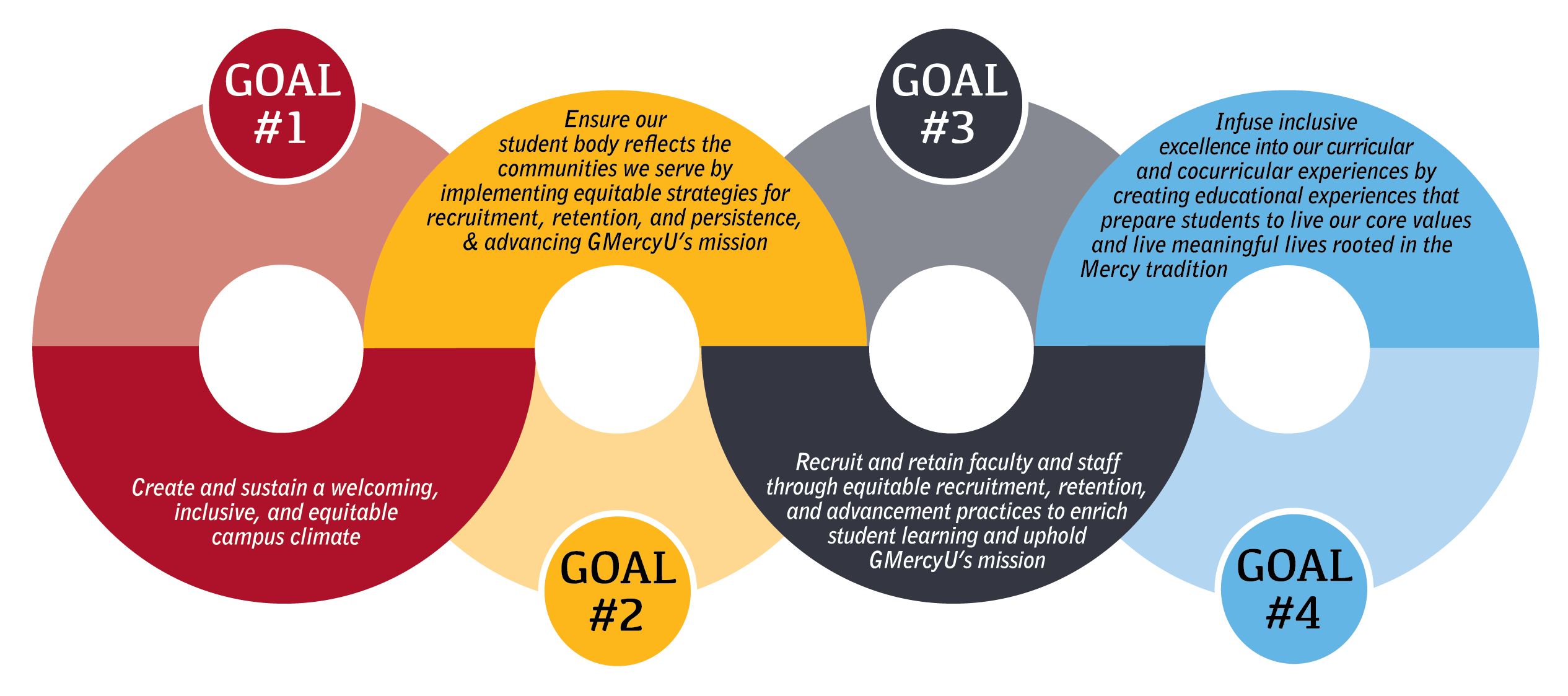 Gwynedd Mercy University's campus-wide Diversity, Equity & Inclusion Strategic Plan was created in partnership with GMercyU’s Office of Diversity, Equity & Inclusion and a committee of faculty and staff from departments across the University. It serves as our roadmap toward creating a more equitable, inclusive campus culture, with four concrete goals and means for holding ourselves accountable to those goals.